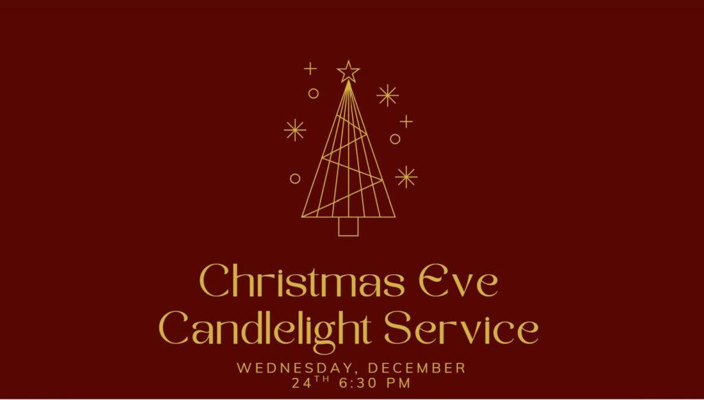 - Christmas Eve Candlelight Service – Wednesday, 12/24 at 6:30pm