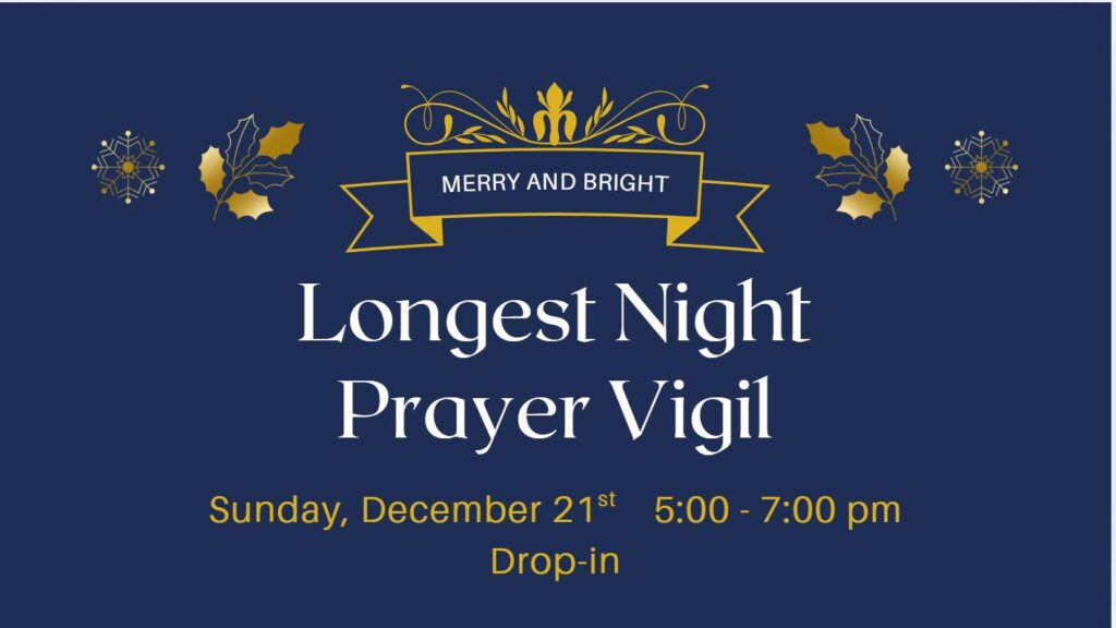 - The Longest Night Prayer Vigil – Sunday, 12/21 at 5:00-7:00pm